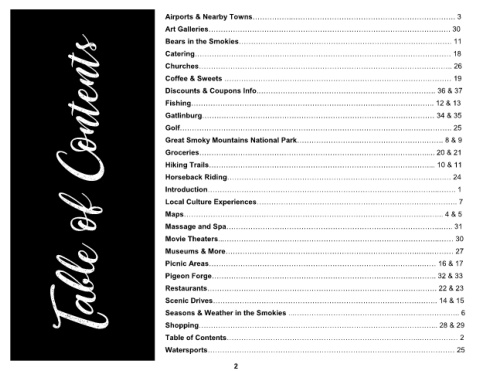 Gatlinburg…………………………………………………………………………………… 34 & 35